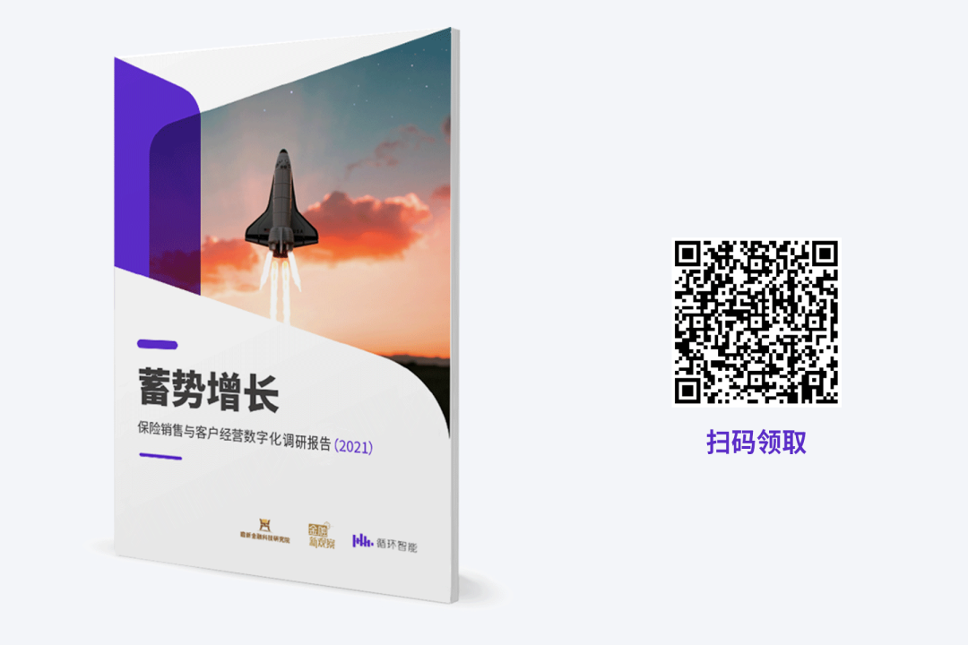 《蓄势增长——2021 保险销售与客户经营数字化调研报告》通过对国内40家代表性保险机构管理者的调研和深度访谈而得出。调研对象包括 23家人身险企业、11 家财产险企业、5 家保险经纪企业和1家互联网保险企业,覆盖了国内人身险公司保费规模前十位中的 80%,财产险公司保费规模前十位中的 60%。