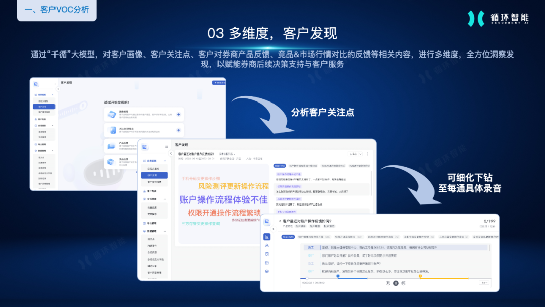 循环智能借助语言大模型(LLM)的总结、分析和发现能力,打造了三项客户VOC应用,来破解这两个问题。